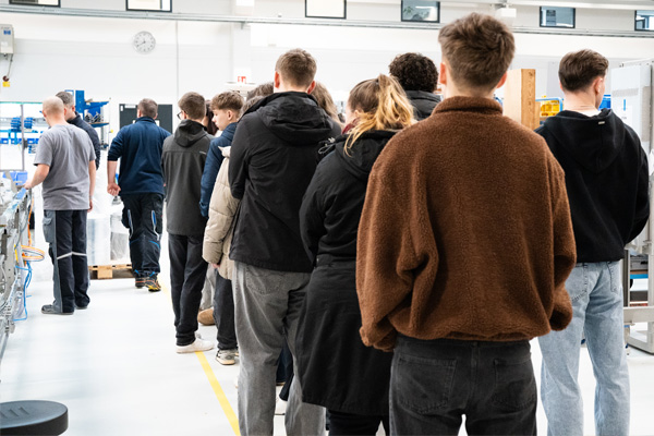 In Gruppen führten wir die Schüler:innen durch unsere Fertigungs- und Produktionshallen. Dabei konnten sie hautnah erleben, wie unsere Maschinen entstehen, welche einzelnen Schritte notwendig sind und wie die verschiedenen Abteilungen ineinandergreifen. Von der Planung über die Fertigung bis hin zur Montage erhielten sie einen authentischen Eindruck unseres Arbeitsalltags.