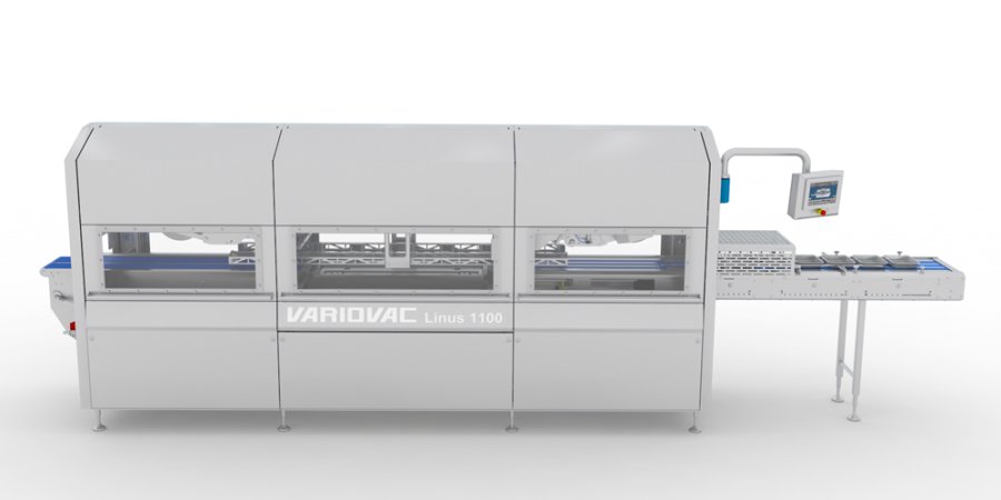 The VARIOVAC Linus 1100 is a versatile fully automatic inline tray sealer designed for medium to high packaging volumes. In addition to its flexibility, it impresses with easy handling and reliable technology. The Linus 1100 can be adapted to different tray sizes — from both sides of the machine: Hinged wing doors provide full access for quick and easy changeovers.