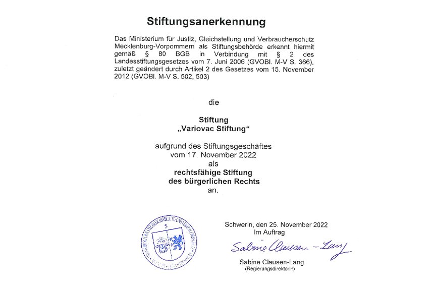 GRÜNDUNG DER VARIOVAC STIFTUNG